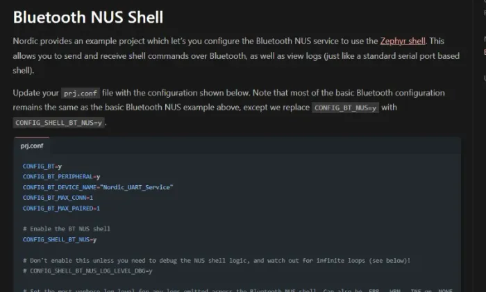 Added info on the Zephyr Bluetooth NUS shell.