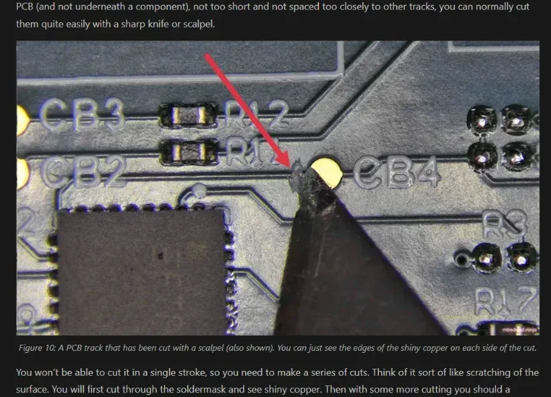 Added info on cutting PCB tracks to the PCB rework guide.