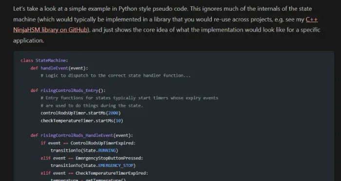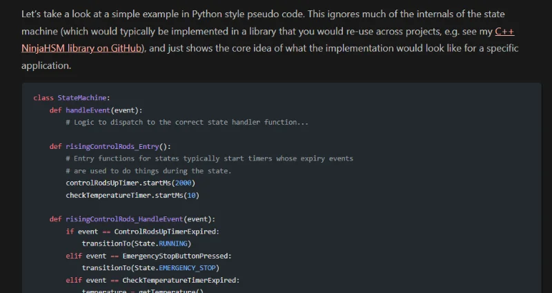 Added more info to the Event Driven State Machines page.