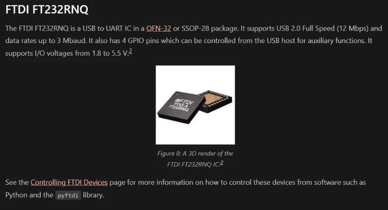Added info on the FTDI FT232RNQ IC.