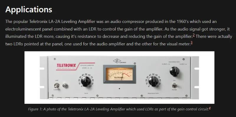 Added info on LDRs used in older audio compressors (e.g. the Teletronix LA-2A) to the site.