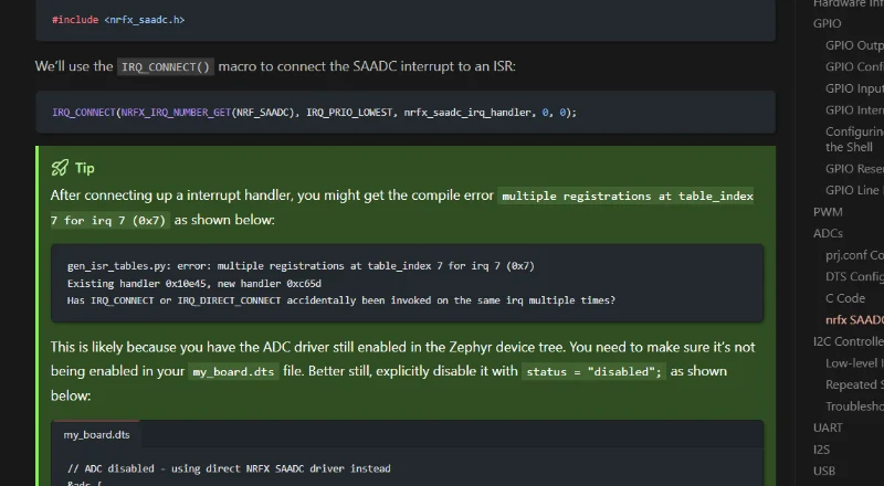 Added info on the nrfx SAADC driver to the Zephyr Peripherals page.