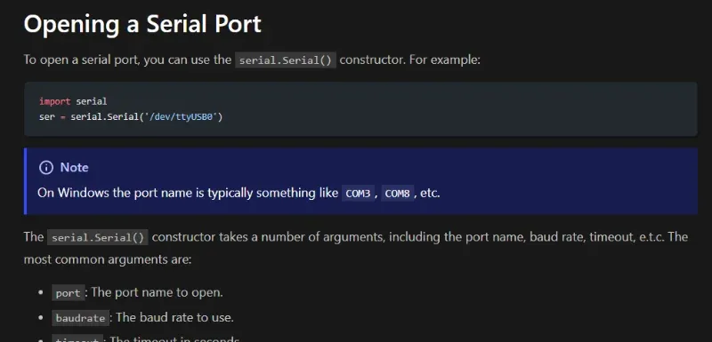 Added info on pySerial, a popular Python library for serial communication.