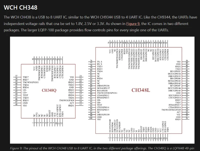 Added info on USB to 4 and 8 UART ICs, such as the CH9344 and CH348.