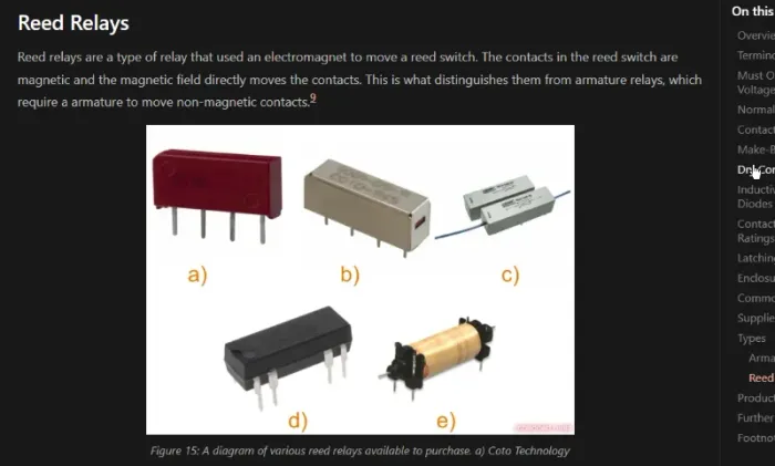 Added info on reed relays, a form of mechanical relay that uses a reed switch for the contacts.
