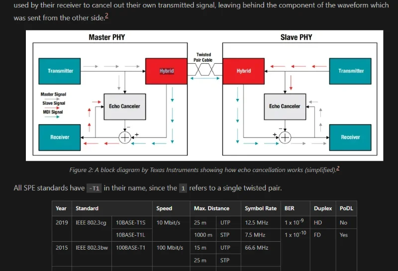 Added info on Single Pair Ethernet (SPE), a version of Ethernet which uses a single twisted pair.
