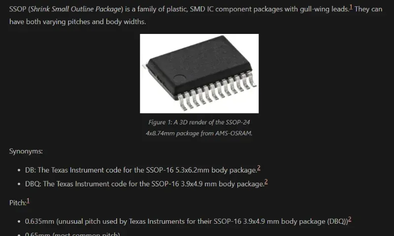 Added info on the SSOP component package.