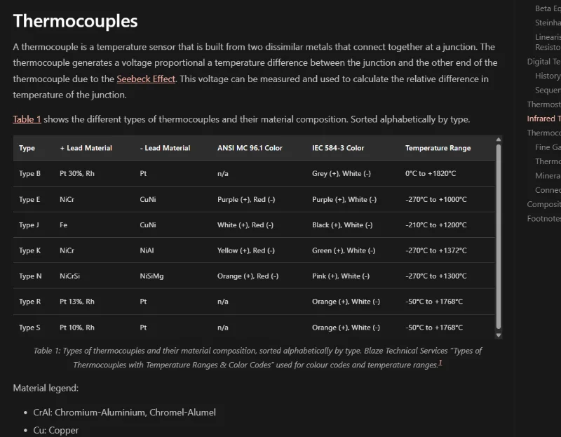 Added info on thermocouples to the Temperature Sensors page.