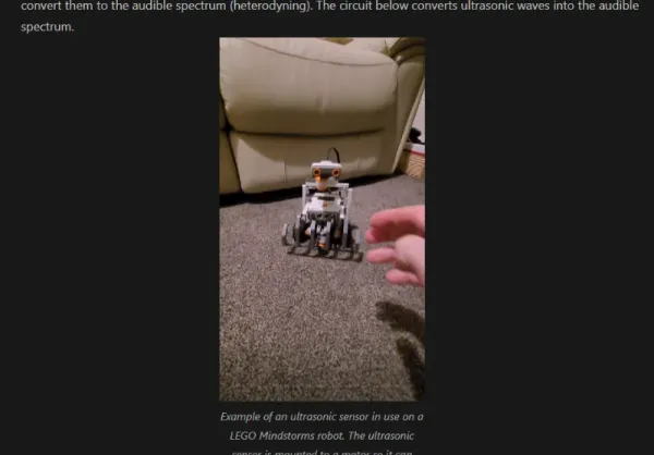 Added a short video showing a ultrasonic sensor in use on a LEGO Mindstorms robot to the Ultrasonic Sensors page.