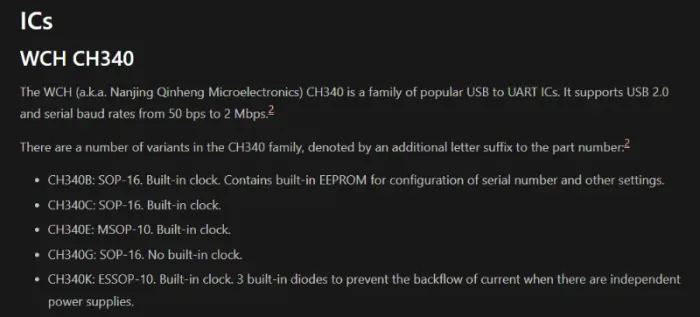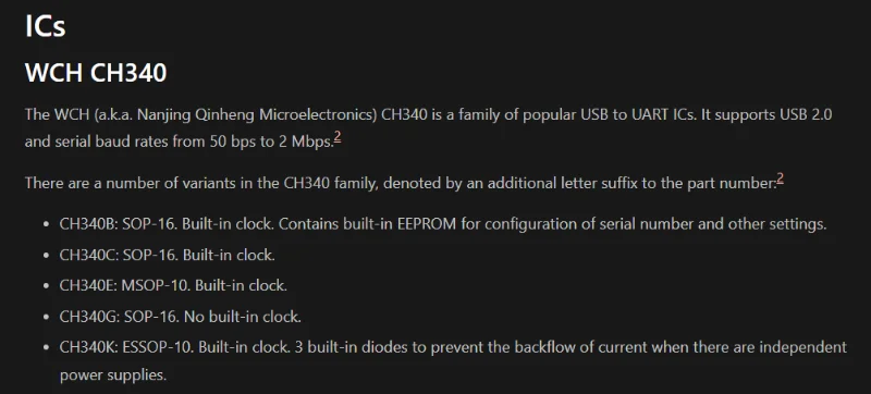 Add info on the WCH CH340 family of USB to UART ICs.