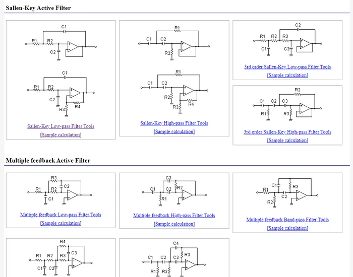 Great site with web-based calculators and design tools for active and passive filters. Very detailed site with many configuration options and the site even outputs graphs of your designed filter response.