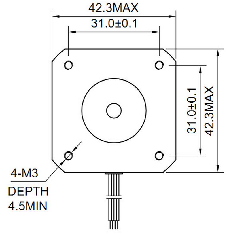 The NEMA17 mounting hole dimensions are shown below. The dimensions are in millimeters.