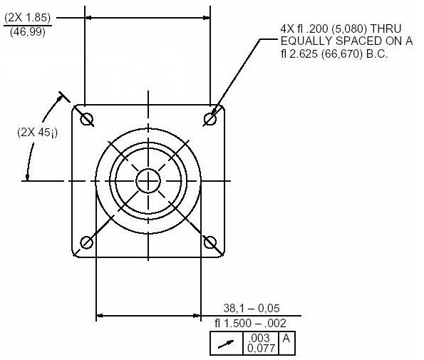 The NEMA23 mounting hole dimensions are shown below. The dimensions are in inches.