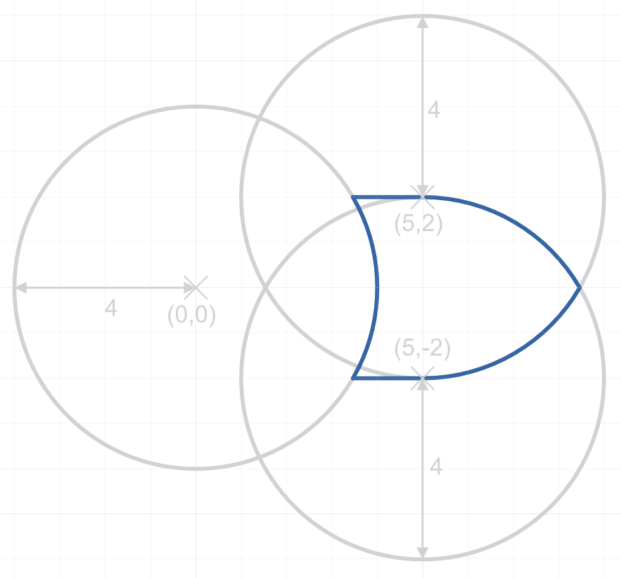 The OR gate be drawn using three equal diameter circles placed on a grid as shown in the below image. Segments of the circles perimeters are taken along with the addition of two horizontal line sections to form the classic OR gate shape2.
