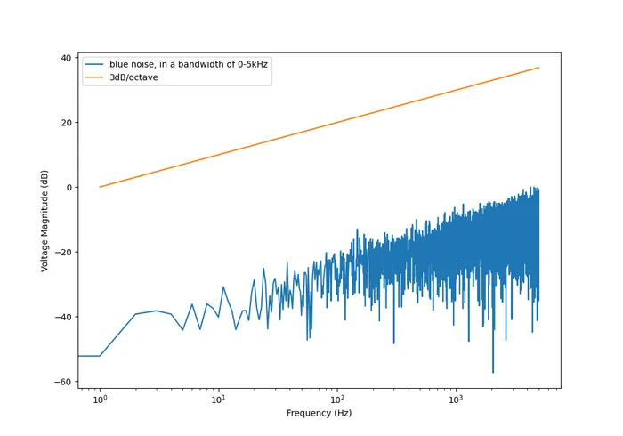 Also called Azure or noise. It has a PSD proportional to frequency. As the frequency goes up, the noise power goes up also. The PSD increases at per octave.