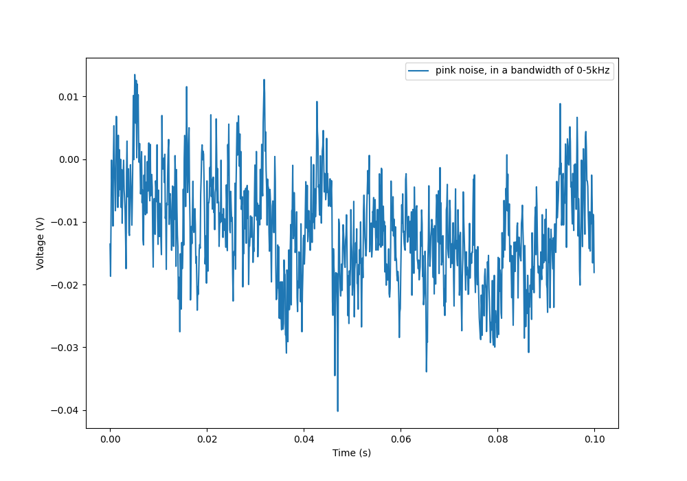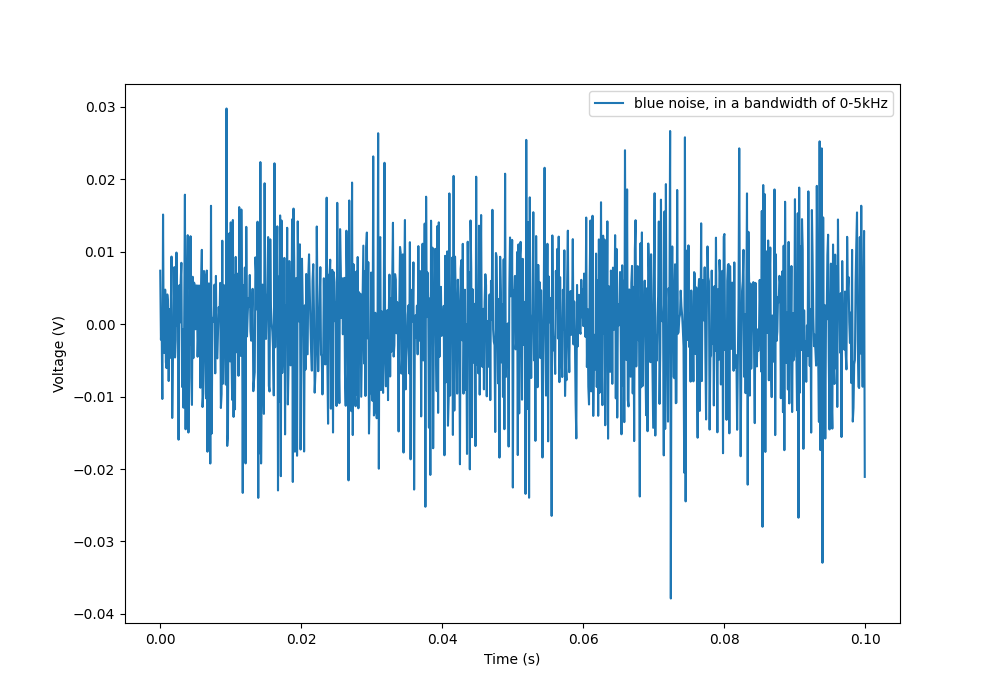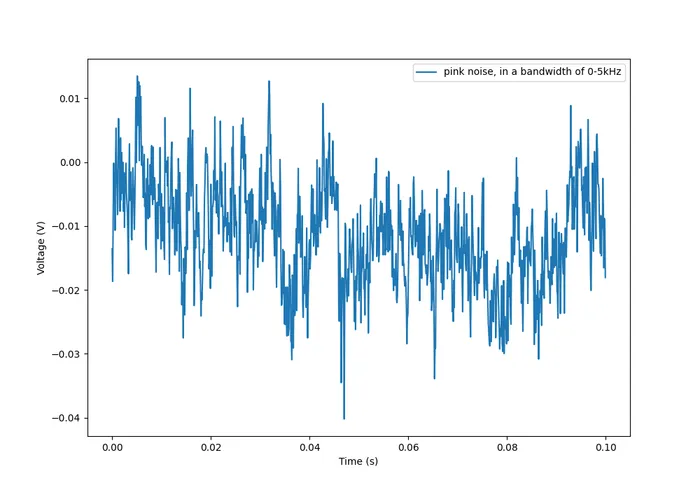 If you don’t have access to equipment that can perform a spectrum/frequency analysis on measured voltages or currents, you can roughly identify the “colour” of the noise sources by recognizing the “shape” of the noise in the time domain on a simple oscilloscope. The following sections contain examples of what each colour of noise looks like in both the time and frequency domain.
