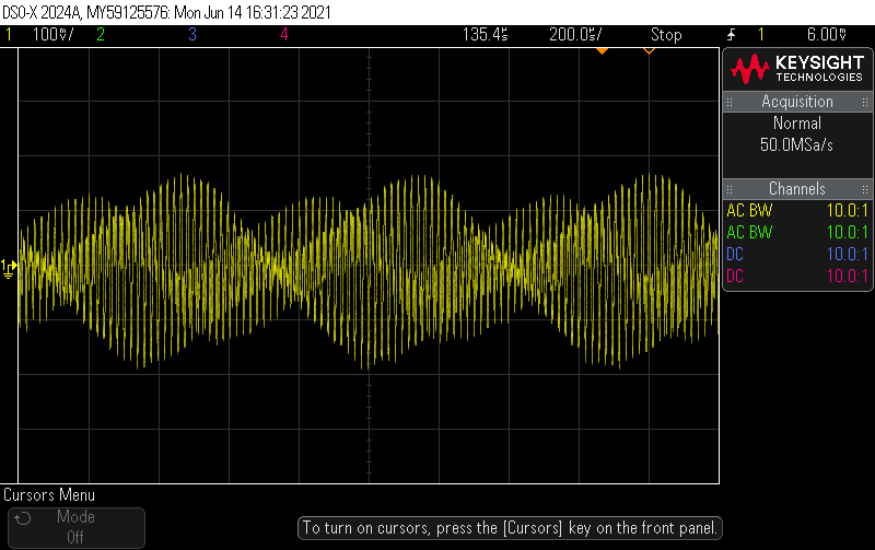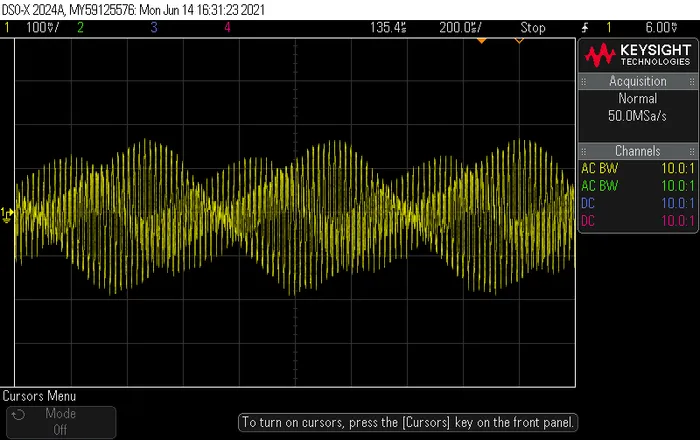 Use the oscilloscope trigger for viewing the noise caused by specific aggressor events. Use the oscilloscope’s infinite persistence measurement to measure total noise. It is good practice to measure of a time span of many minutes with the device operating in as many of it’s different states as possible.