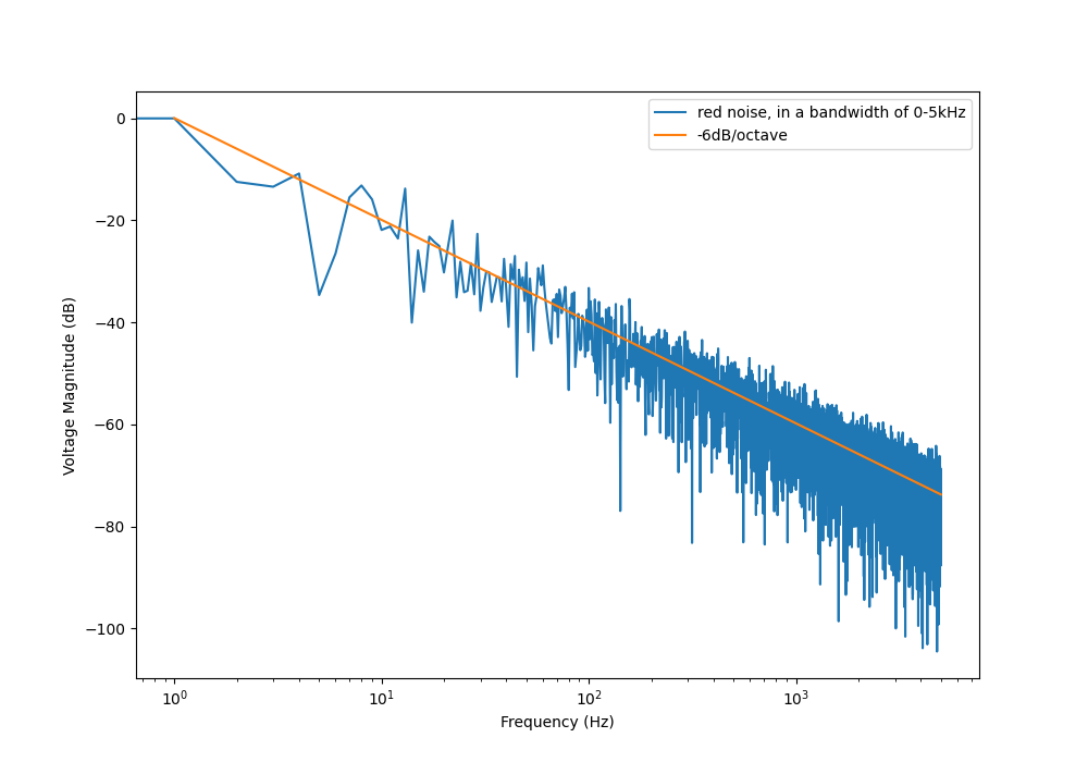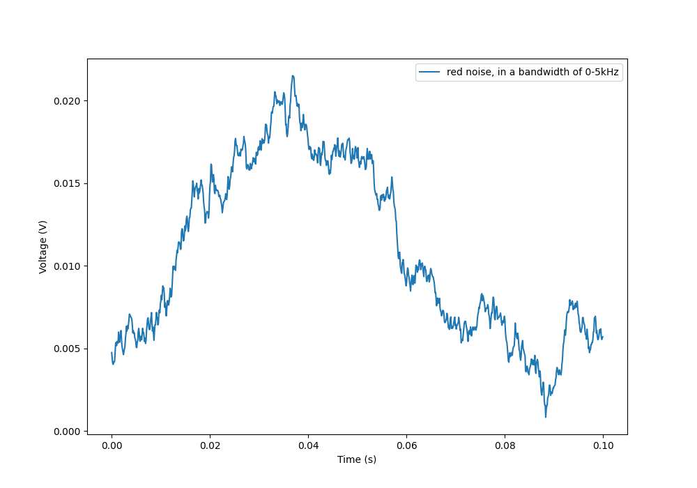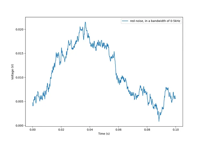 - Red noise: Red noise has a spectral power density proportional to . Also called Brownian noise.