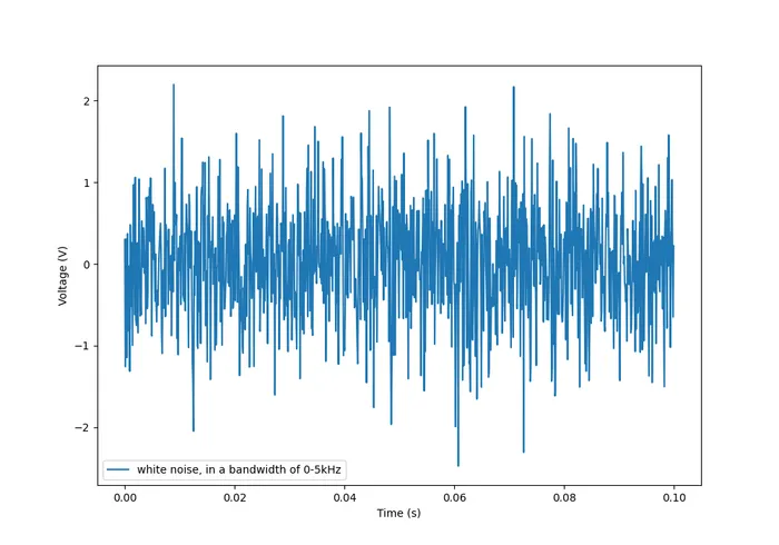 The following graph shows what Gaussian white noise looks like in the time domain: