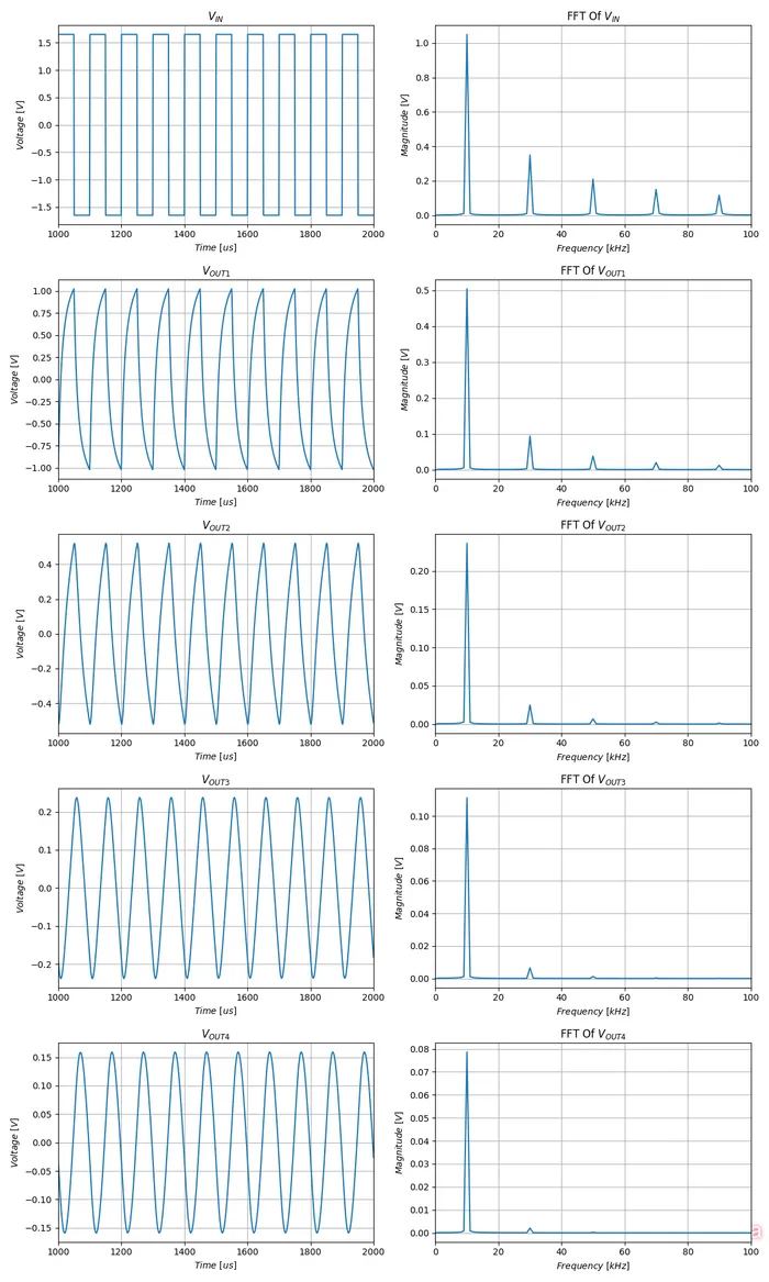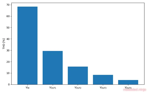 By the time we get to the final output, , we are down to a THD of . Pretty good!
