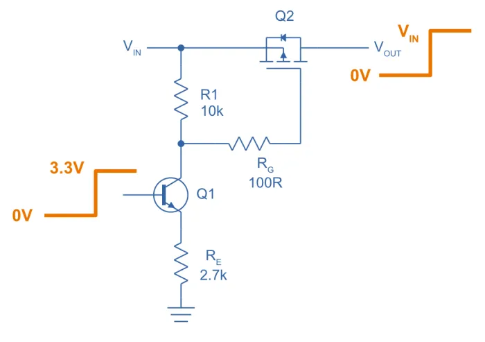 A simple resistor divider can be used to provide the correct to turn on a P-channel MOSFET based load switch, however that only works well if the is known and stays at fixed voltage. If it doesn’t, then the resistor divider provides a varying , which could either turn the switch the MOSFET off at lower input voltages, or exceed at higher input voltages ( for most MOSFETs).