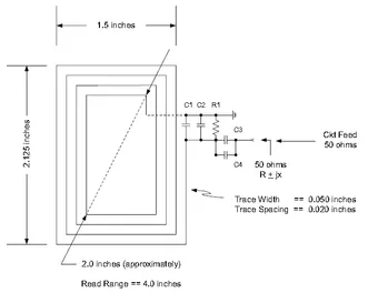 The following diagram is of a planar PCB 13.56MHz RFID antenna design, recommended by Texas Instruments (TI). TI states in Application Report SLOA135: Antenna Matching for the TRF7960 RFID Reader that,