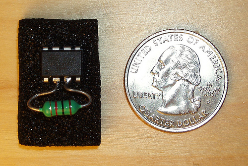 Tags can be made with incredibly basic materials! Once such example is the RFID tag made with just a single AVR ATtiny chip and inductor, as shown in the image below. This is an incredible hack which uses multiple “dirty tricks” to work. Here is a link to the original article by Scanlime.
