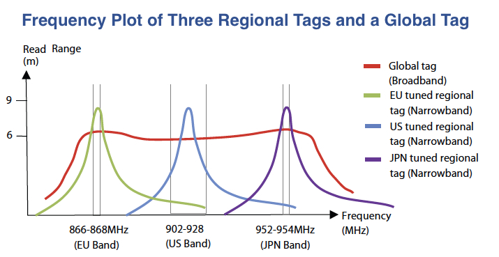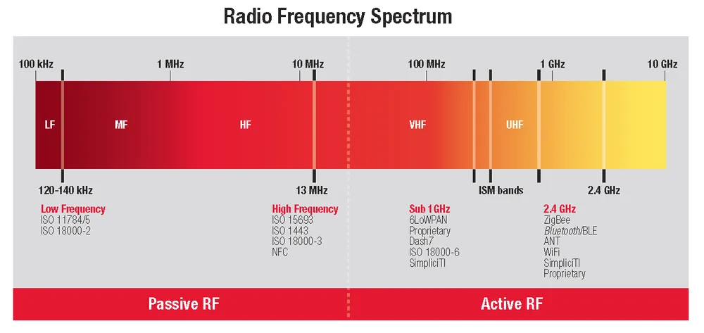 There are four (but three common) frequency bands that RFID uses. Based on knowledge of sound and radio waves, you’d expect lower frequency RFID to achieve longer read distances. But the opposite is true! Higher frequency RFID communications get the longest read ranges.