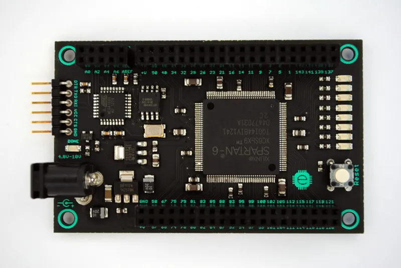 This is an example of a PCB which I really like. It is called “The Mojo”, and it is a Arduino-like FPGA development board. I love the black and green colour combination of the soldermask and silkscreen respectively.