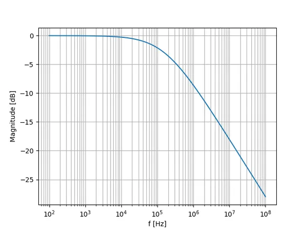 A first-order low-pass RC filter has the transfer function: