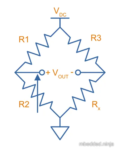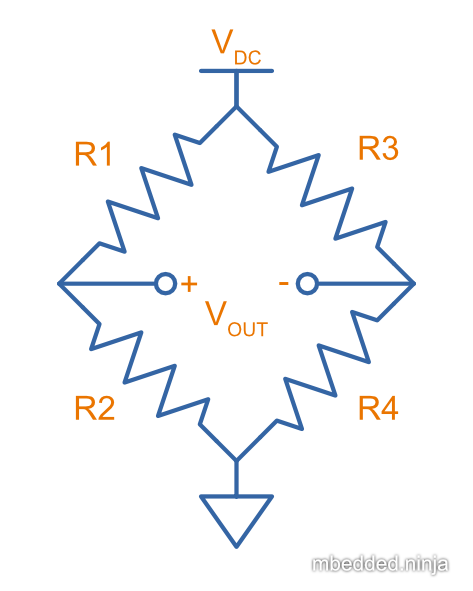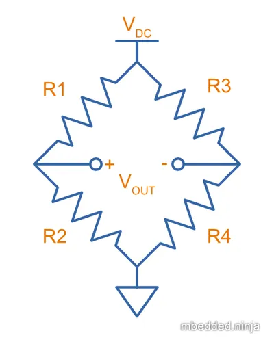 - You don’t need a precise auxiliary voltage reference to compare with if you just plan on balancing the bridge (i.e. making ). Because it is ratiometric, in this case the supply voltage to the bridge is also unimportant.
