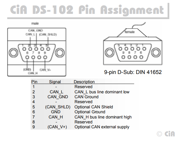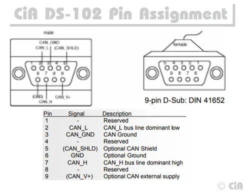 The CiA DS-102 standard defines CAN bus pin assignments for the ubiquitous serial DE-9 connector: