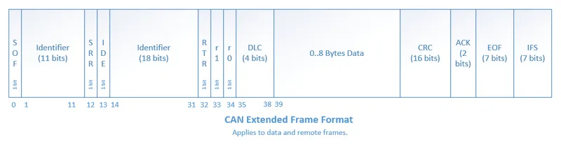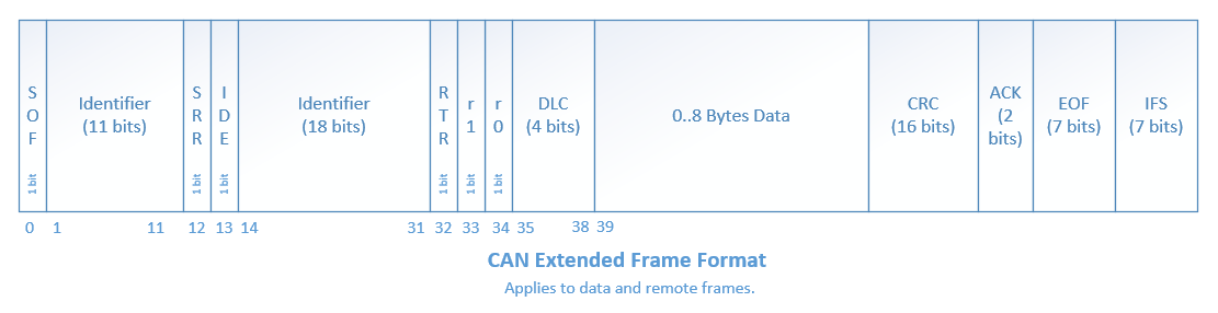 - CAN2.0B: Released in 1995. Supports both standard and extended frames (11-bit and 29-bit identifiers). CAN 2.0B is backwards compatible with CAN 2.0A, with the exception that the CAN 2.0A controllers have to be updated to be aware of CAN 2.0B and have the passive feature. If they don’t, CAN 2.0A controllers will flag CAN 2.0B extended frame messages as errors.
