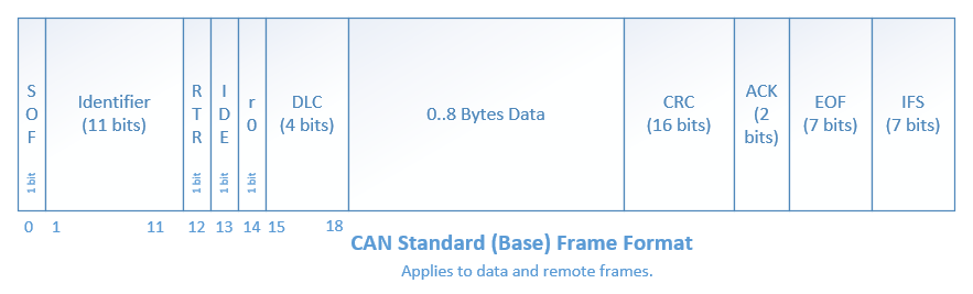 - Remote Frames: Used to request data and possibly implement a request-response system (the CAN standard does not prescribe what they should be used for). Contains no data payload itself, and very similar frame structure to a data frame. In practise, remote frames are used very little in industry.