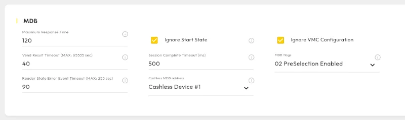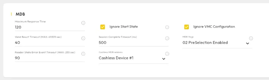 Payment devices such as the Nayax Onyx can use MDB to communicate with other parts of a vending machine.