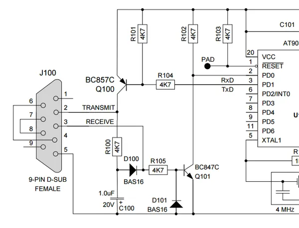 | 6 | RxD | 3 | TxD |