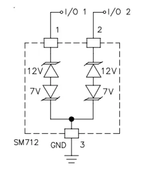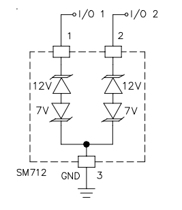 One such example is the Semtech SM712 diode array. This is a placeholder for the reference: fig-sm712-tvs-diode-array-designed-for-rs-485-data-lines shows the internal schematic of the component.