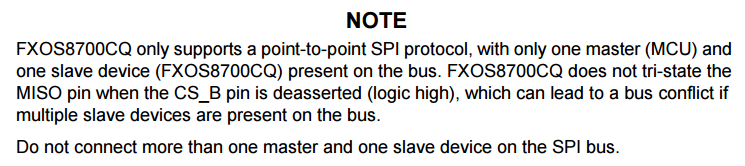 Some slave devices only support point-to-point SPI communication. This means that there can only be one master on the bus, and also only one slave (the device which supports point-to-point SPI). The Freescale (now NXP) FXOS8700CQ magnetometer is one such example.
