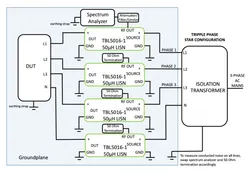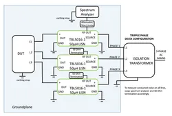 • Three phase, star: 1 LISN on each phase and one on neutral (4 total).