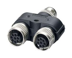 The M8/M12 connector family also come with splitters --- Y and T shaped units which allow 3 cables to be connected together.