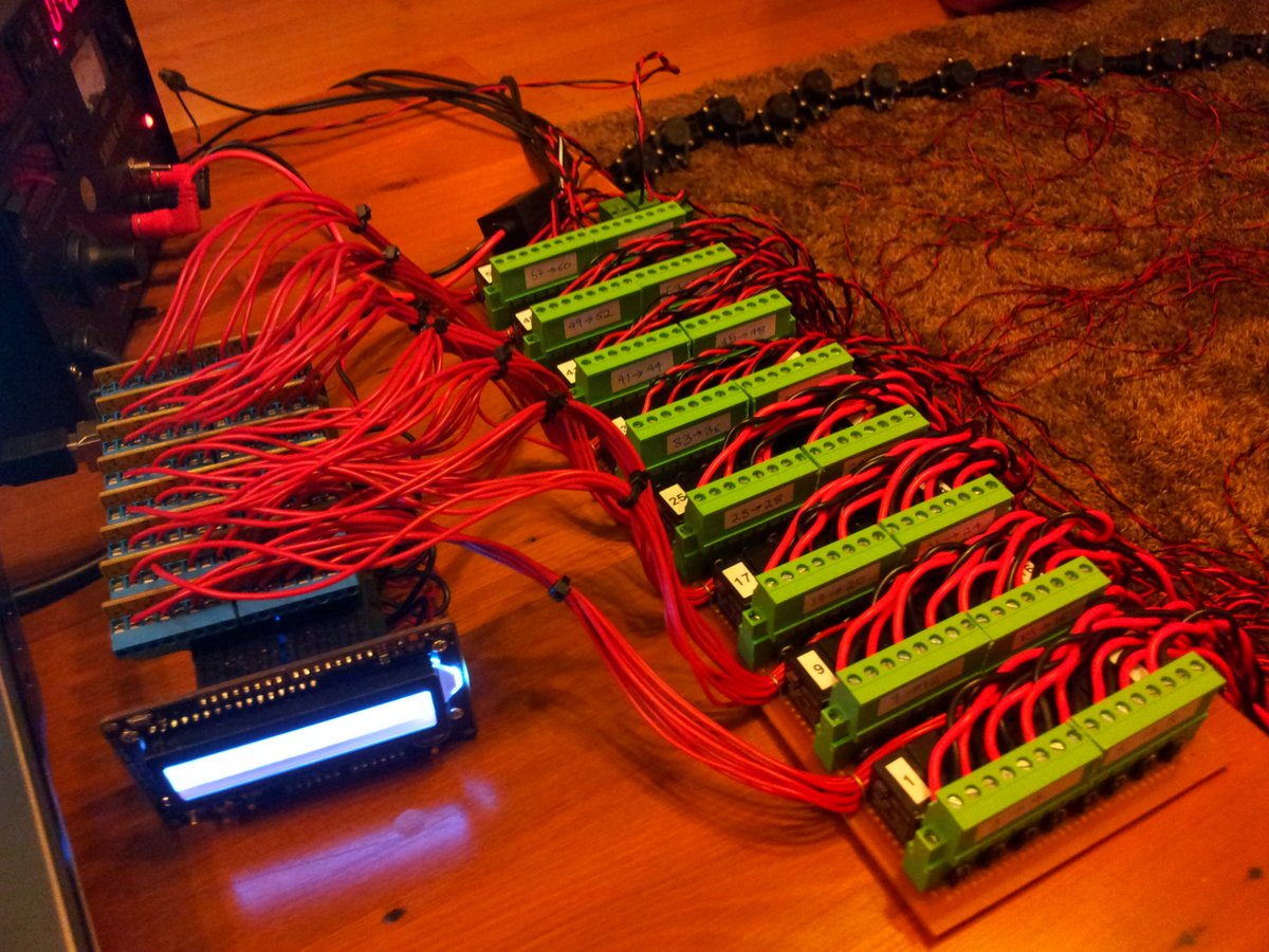 You can see the push-in terminal blocks I used to connect up all the solenoids for the Luxcity Tonic project in the image below (the green things with numbered stickers and wires coming out of them).