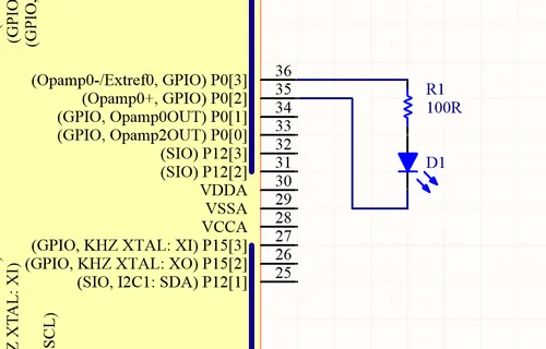 The schematic in This is a placeholder for the reference: fig-led-connected-to-micro-for-light-detection-schematic shows how to connect an LED up to a general microcontroller for light detection. The LED and resistor are connected up to GPIO pins.