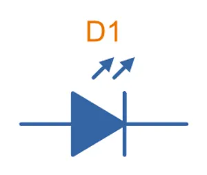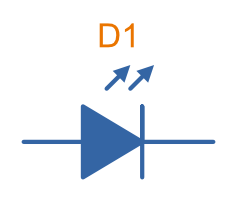 The schematic symbol for a LED looks like a diode symbol, but with arrows added to indicate that it gives of light. The schematic symbol for a LED is shown in This is a placeholder for the reference: fig-led-diode-schematic-symbol. As with a normal diode, the anode is on the left, and the cathode on the right.