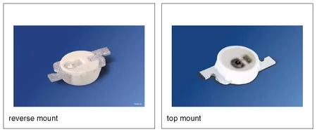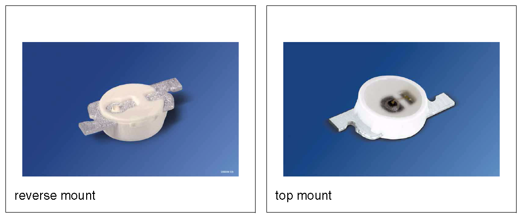 Reverse mounting LED’s are SMD LEDs which have the light source emitting in the reverse direction, e.g. toward the PCB they are mounted on. A hole is drilled in the PCB to let the light through to the other side. They are useful when using a PCB as a user interface panel, or when you want to use light guides (since the light guides can be mounted up against flat PCB).