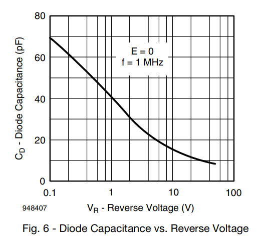 represents the junction capacitance, cause by the depletion region of the PN junction. Junction capacitance effects the photodiodes high-frequency response, as the capacitances impedance drops with increasing frequency. Lower capacitance photodiodes have better high frequency response. The value of is not constant — in fact it is strongly dependent on the reverse-bias voltage. The higher the reverse-bias, the lower the capacitance. Thus you can improve a photodiodes high frequency response by reverse-biasing it at a high voltage.