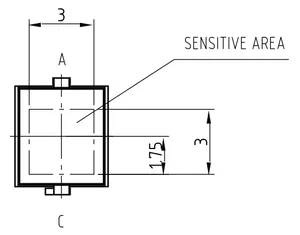 The sensitive area is the area of the PN junction that is exposed and responds to light. A larger sensitive area will result in a photodiode being able detect lower levels of light, and provide more bits of resolution.