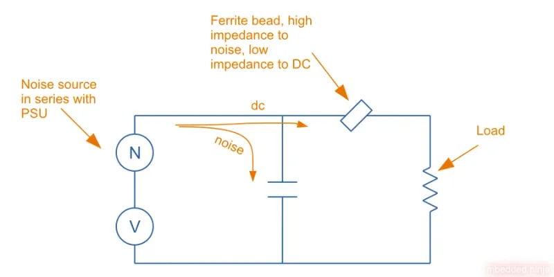 - Present a high impedance path for high frequency noise, forcing it to travel through other components. This is commonly achieved by making a pi-filter from a ferrite bead and two capacitors.