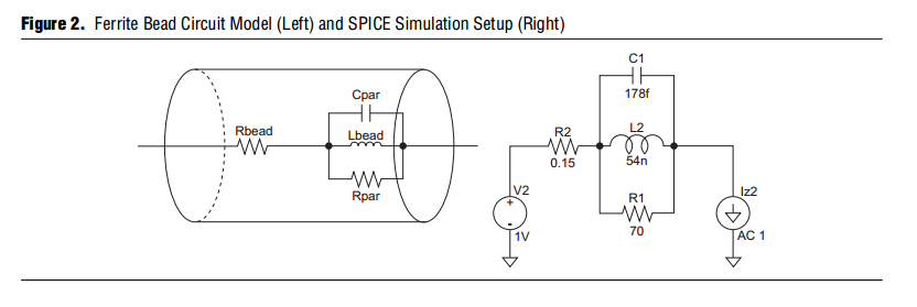 The following image shows a common way of simulating a ferrite bead.