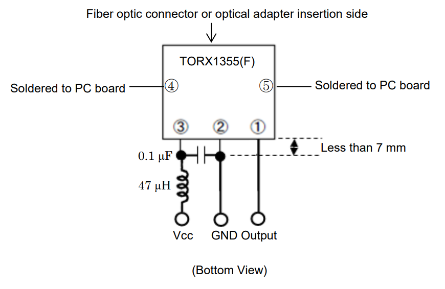 Toshiba (2020, Mar 12). TORX1355(F): Fiber Optic Receiving Module (datasheet). Retrieved 2022-03-31, from https://nz.mouser.com/datasheet/2/408/TORX1355(F)_datasheet_en_20200312-1108723.pdf. ↩ ↩2 ↩3