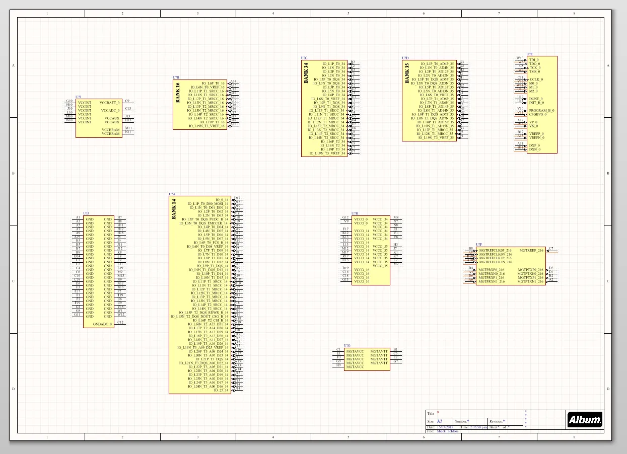 Below is an A3-sized schematic sheet with JUST one 236-pin FPGA component added to it (no actual routing).